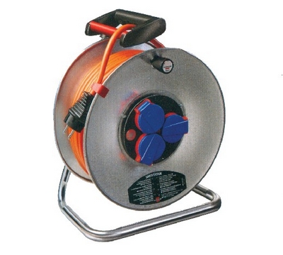 电缆绕线器,用于接长电源送电半径。230V,3个安全插座,带防尘保护盖。钢卷盘耐摔撞磕碰,表面镀锌防止生锈,锁紧制动功能,电缆固定别扣。过热过载双重保护,防止电压瞬时升高。钢架结实耐用,方便携带。