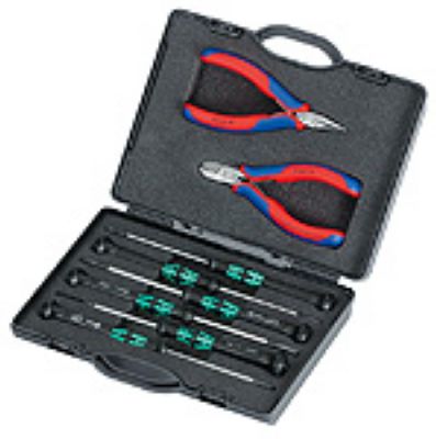 8件套(2件电子剪钳,6件电子微型螺丝批)实用的工具存放箱,采用耐磨塑料制成,泡沫槽口固定