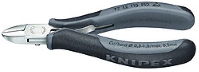 防静电;钳手柄采用双色双重材料手柄,黑色和灰色;型1:圆头,偏刃和安全挡片装置(可以松开),防止线头剪切后飞溅;长度115,头部镜面抛光,双色双重材料手柄