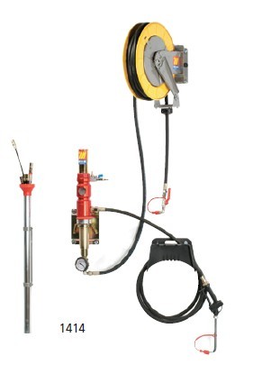 ME1415配有: 气动双动膜片式泵 墙装托架 10m G1/2”软管卷盘 9件导管组套 ?12mm导管 墙装导管架 1.5m G1/2”连接管 4m吸油管