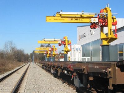 使用时候用相应设备从标准货车上装卸钢轨 所有通用运输车的万能安装工具 机械电气设计 操作简单,单人操作,电气设计 特殊设备:无线遥控,电力发动机等