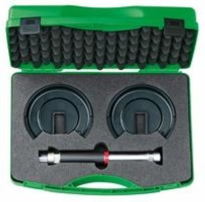 Zum Spannen und Entspannen von zylindrischen Federbeinen. Mit 2x2 Druckplatten (S = ? 80-119 mm und L = ? 89-141 mm) für die individuelle Anpassung an die Federbeine. ACHTUNG: Schützen Sie immer Augen und Gesicht beim Gebrauch von Federspannern! Dieses We